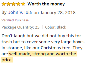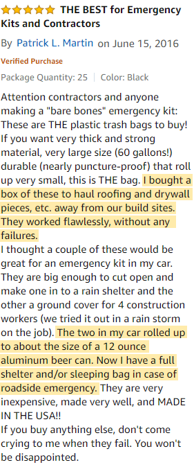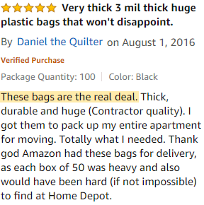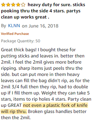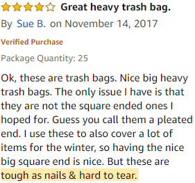 The toughest of our trash bags (3+ Mil) are near puncture-proof to even most seriously straining trash – stuff like:
